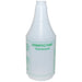 The Tolco Disinfectant Spray Bottle (24 oz.) is designed for professional use with enhanced safety features, including bilingual (English/Spanish) and color-coded imprints that resist wiping and peeling for clear, lasting identification. Made from natural HDPE, it offers durable construction and ultraviolet ink printing for superior chemical resistance and a bright, glossy finish. Its versatile design supports multi-product identification with check-off boxes, making it an adaptable solution for various cleaning tasks.