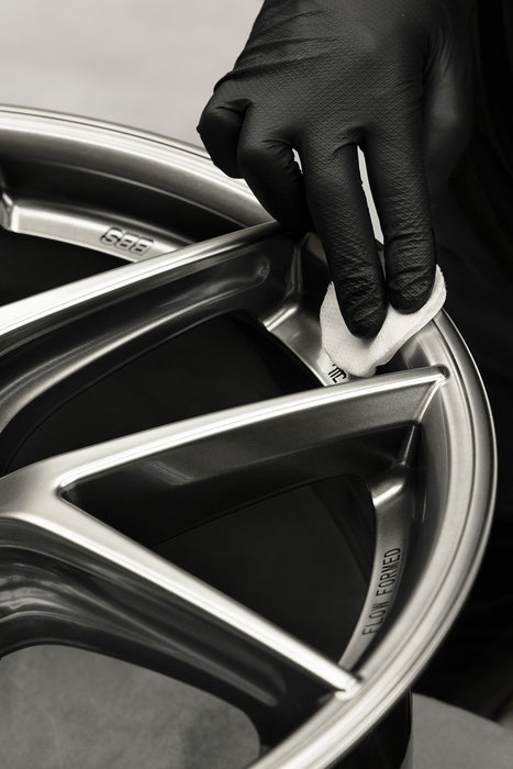 • Wipe down each wheel before application with Gtechniq Panel Wipe – this will ensure the best possible bond. Please be careful with smart repairs on your wheels as this may strip the paintwork on them