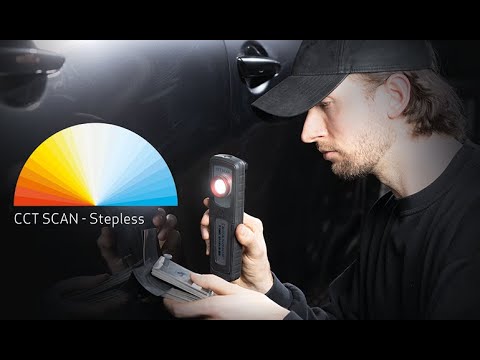 Compared to the previous model, SUNMATCH 4 features a unique, stepless CCT SCAN function. By activating the CCT SCAN function, the handlamp will automatically scan the surface of the object with the entire colour temperature spectrum ranging from 2500K to 6500K. At any point, the CCT SCAN function can be locked, and in this way, you will be able to customize the light to the specific task. This provides optimum conditions for the most accurate colour match and highlighting and discovering paint defects. SUNMATCH 4 also features stepless dimmer function in the range of 10 % to 100 %. A spotlight for inspection is also included at the top.