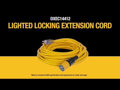 DEWALT 12/3 Lighted Locking Extension Cord with CGM - 100 ft., Yellow