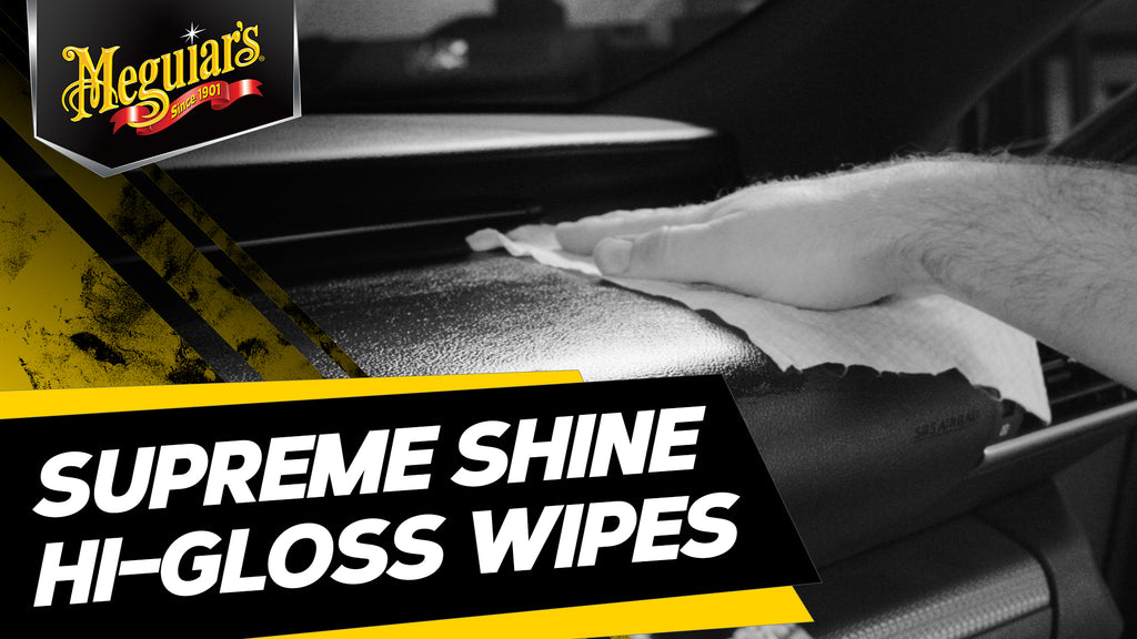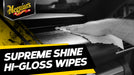 Meguiar's Supreme Shine® Hi-Gloss Protectant Wipes offer a superior high shine gloss with superior UV blocking protection to preserve vinyl, rubber & plastic surfaces. This non-greasy formula quickly cleans, shine & protects defending against fading, cracking & aging in one easy step.
