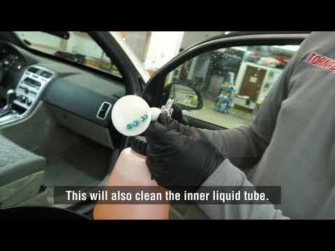To clean any surface, dilute the desired cleaner according to label’s directions. Turn the liquid valve straight up and use an overlapping motion as you pass the TORNADOR® Car Cleaning Tool over the surface. If necessary, allow the cleaning liquid to dwell for 10-15 seconds. Use a microfiber towel to absorb excess liquid. Then turn the liquid valve off and use the compressed air to dry the cleaned area.