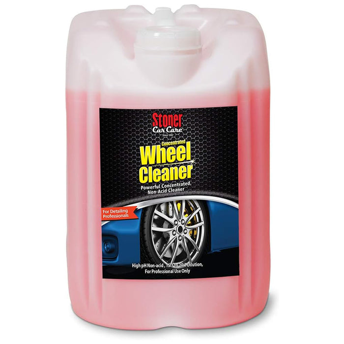 Stoner Wheel and Tire Cleaner is a heavy-duty, fast acting cleaner that quickly cuts through tough road grime to make wheels, rims, whitewalls, and tires look new. Concentrated for maximum economy and cleaning power. Suitable for use on aluminum, alloy, and chrome wheels when used as directed. Our strongest wheel and rim cleaner! Concentrated, time saving, non-acid formula is ideal for car wash prep areas, hand use, and automatic or self-service spray applicators at low pressure. Economical concentrate can be diluted up to 20:1 . To achieve optimum dilution, start by diluting 1 part concentrate with 20 parts water. Stoner Wheel and Tire Cleaner is formulated to produce a pH of 10.5 at a 20:1 dilution ratio. Test for desired pH, cleaning strength, and application conditions, then adjust with caution.