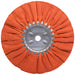 The Heavy Cut Orange Ruffy 8" buffing wheel is dipped for the use of iron, steel, aluminum, and stainless steel. The 8" diameter includes a 3" center plate and 5/8" arbor. The suggested compounds for this are 87 Stainless, BrownTripoli.